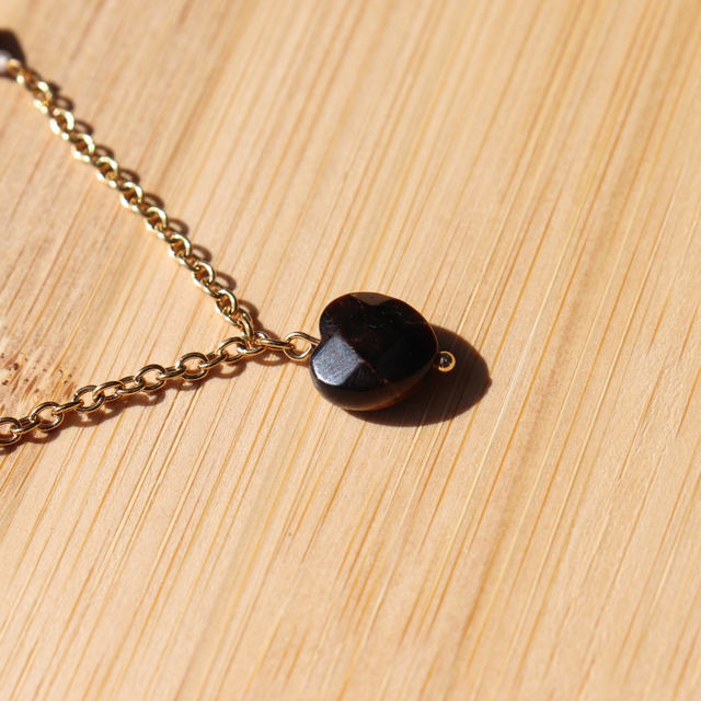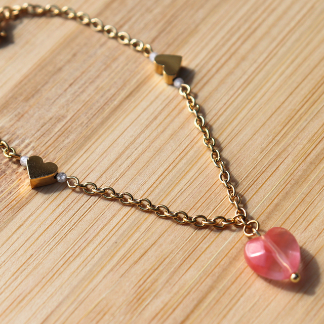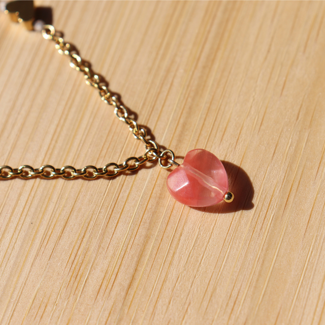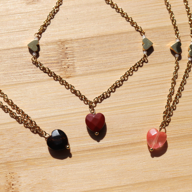 🛠️ Zirconiums, pierre naturelle taillé en coeur facetté et perles dorées en acier inoxydable.